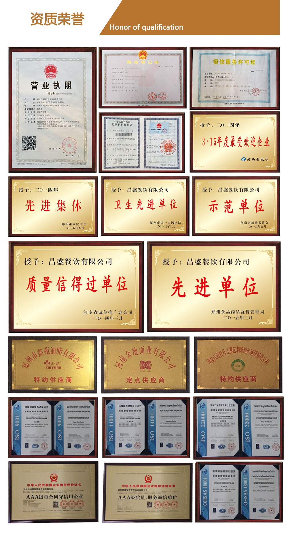 資質(zhì)榮譽